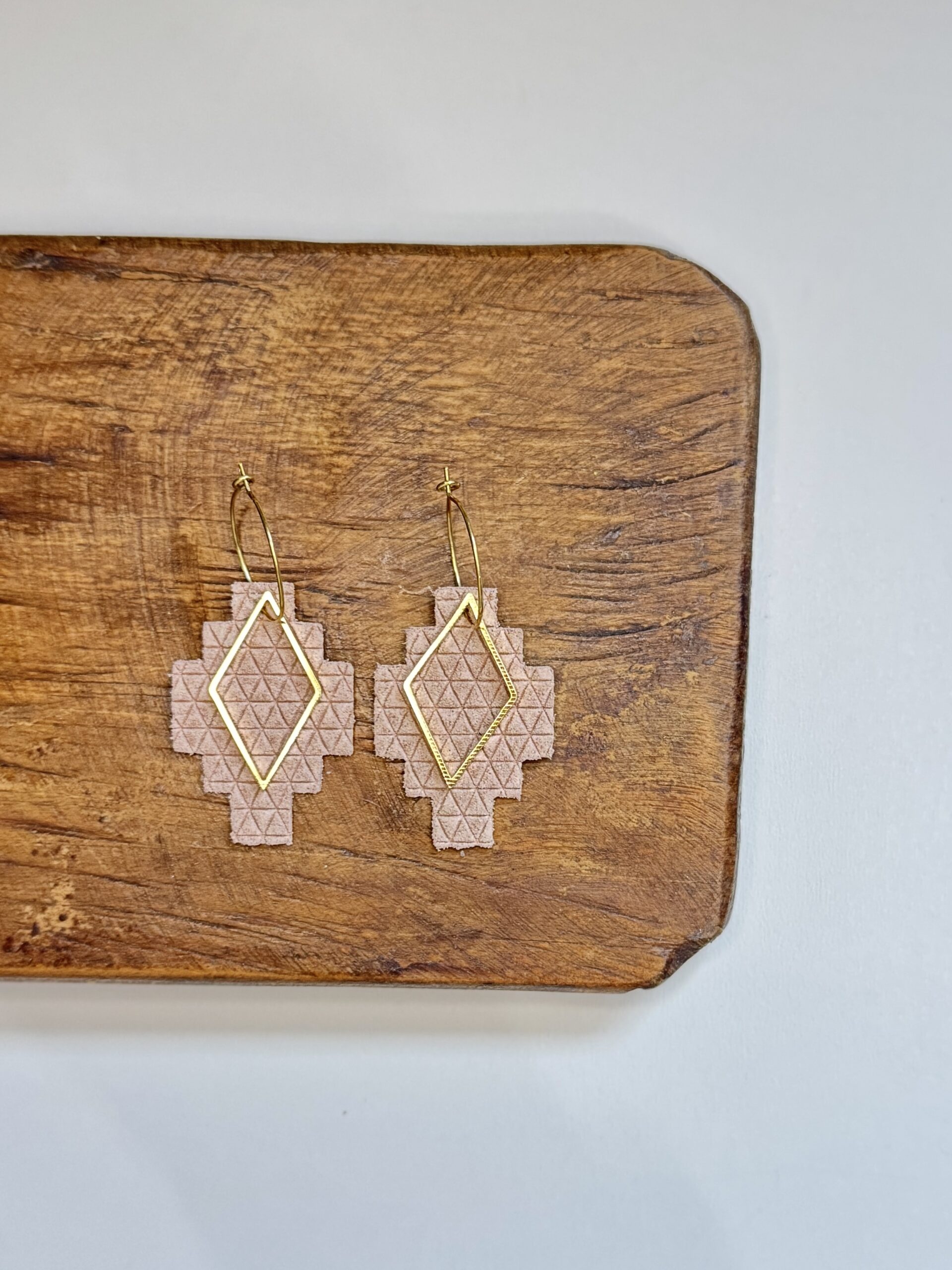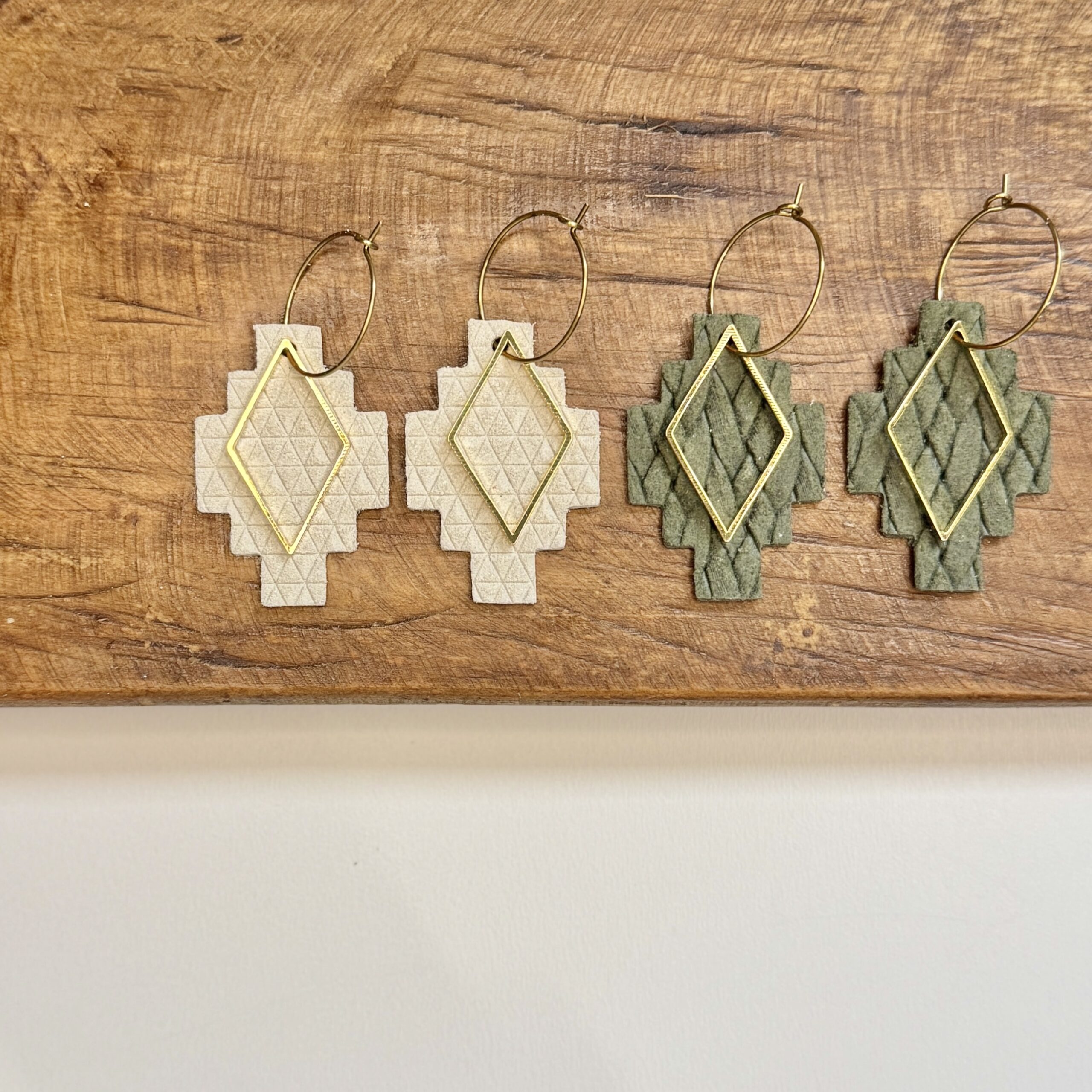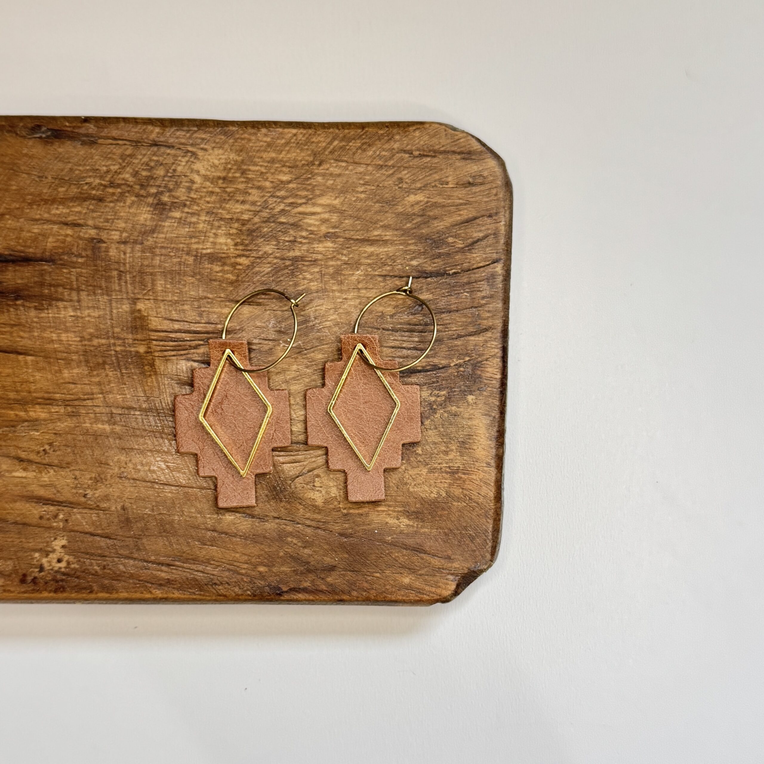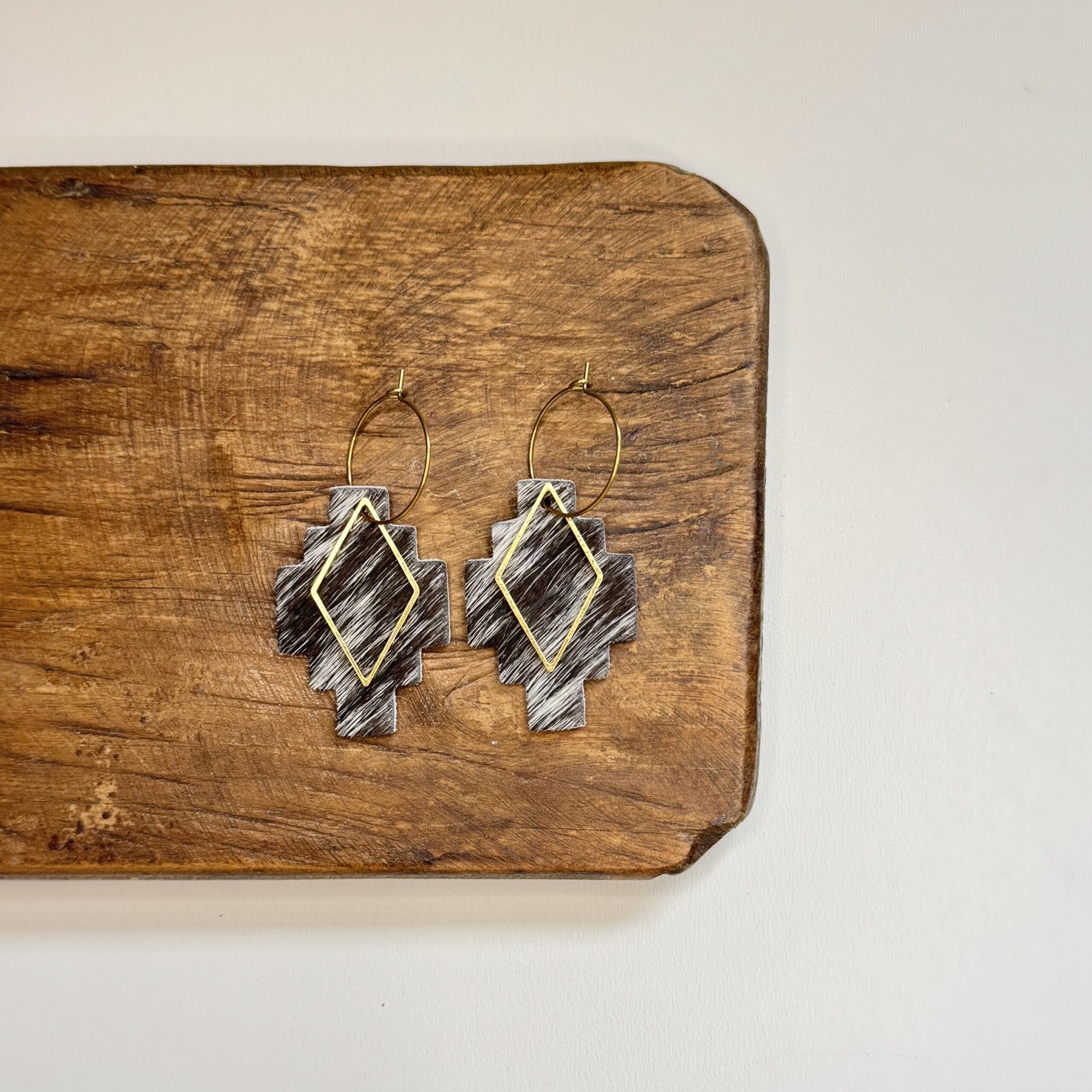 These Aztec inspired genuine leather earrings measure about 2” long